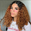 Carré bouclé (Curly Bob) avec dentelle frontale, dégradé de brun clair à caramel, boucles profondes ...